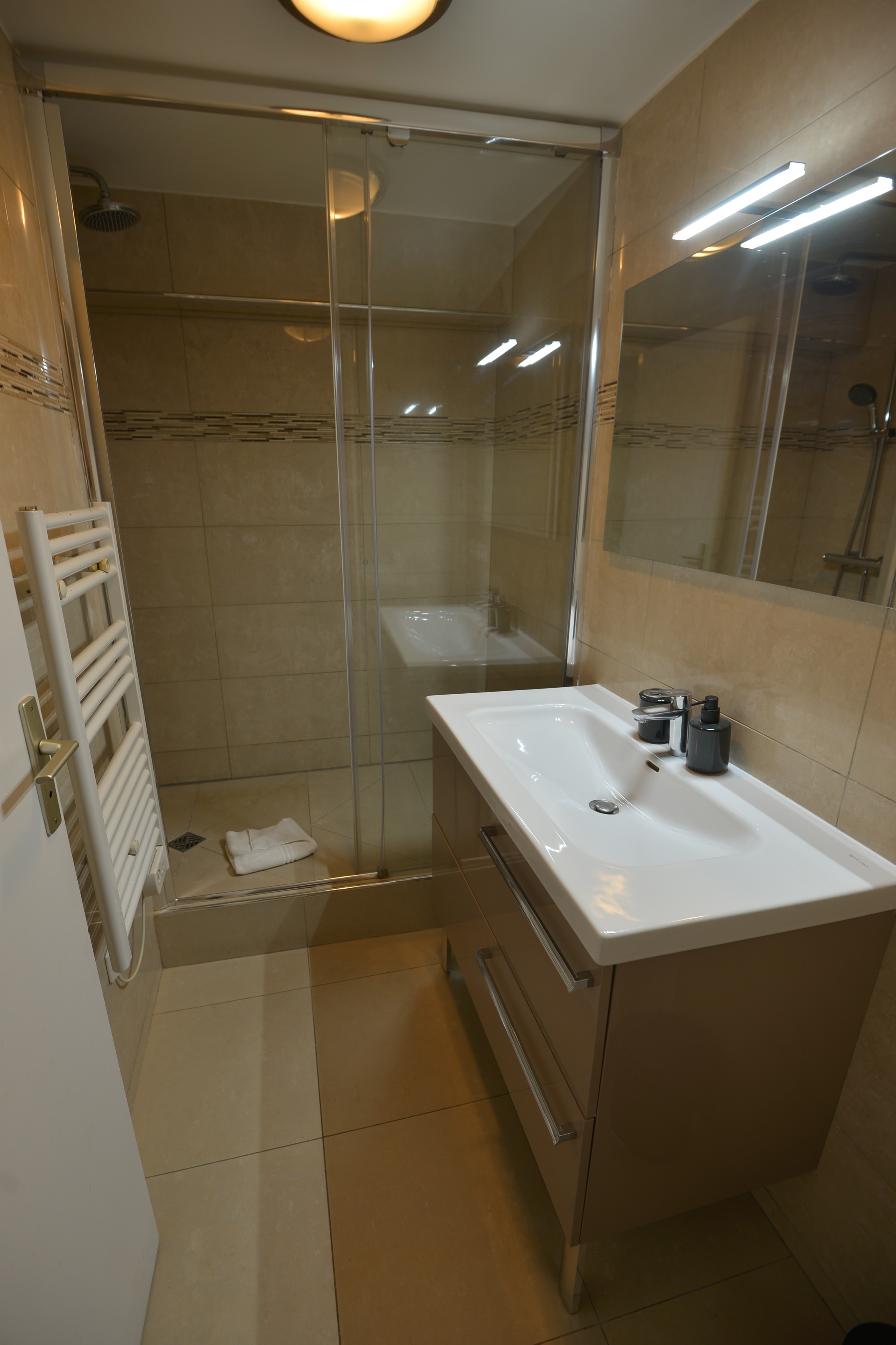 Excellent emplacement, salle de bain, cuisine, lave-vaisselle, micro-ondes, réfrigérateur, lave-linge, fer à repasser, TV, internet, lits, ascenseur, pas de bruits gênants, bonnes toilettes